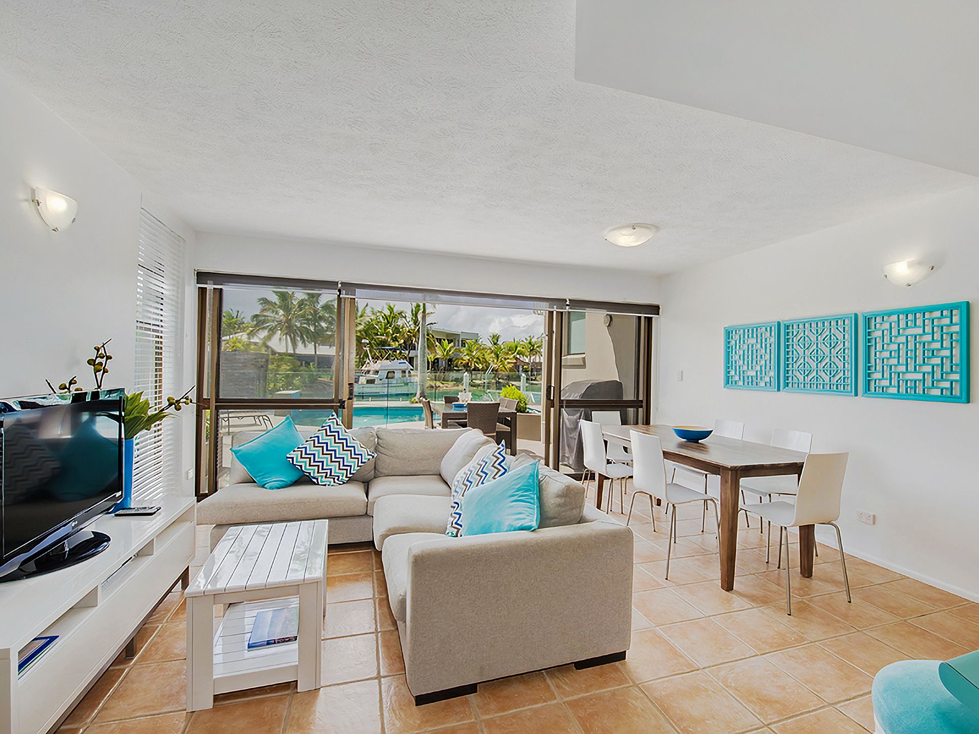 A stylish 2 bedroom townhouse apartment, balcony off master bedroom with canal views and private outdoor entertaining area.