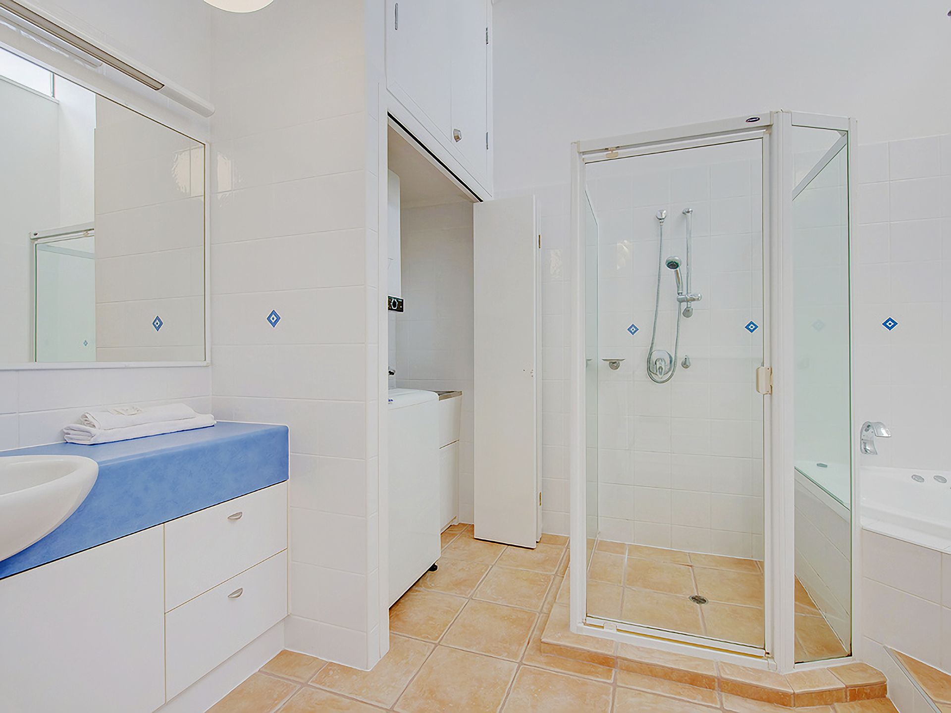 Main bathroom/Laundry (2 person spa bath) separate toilet