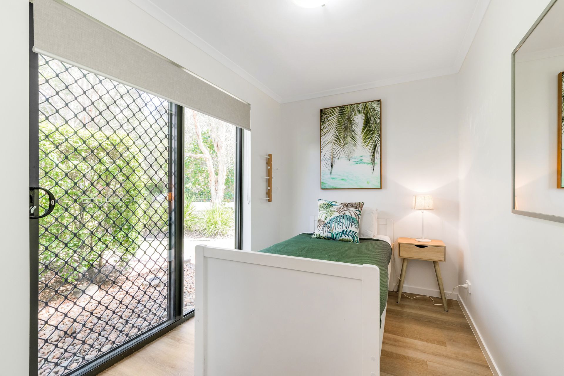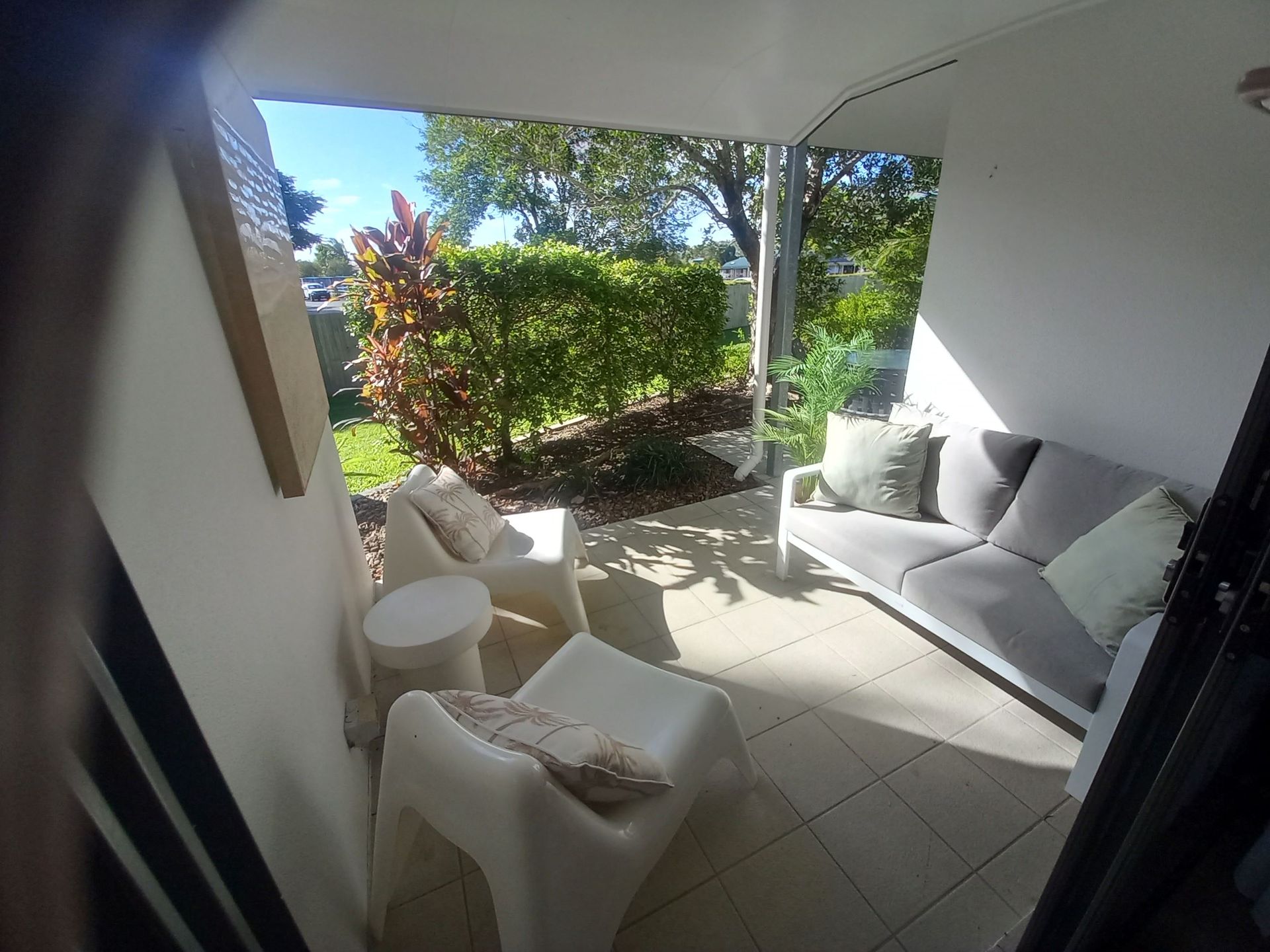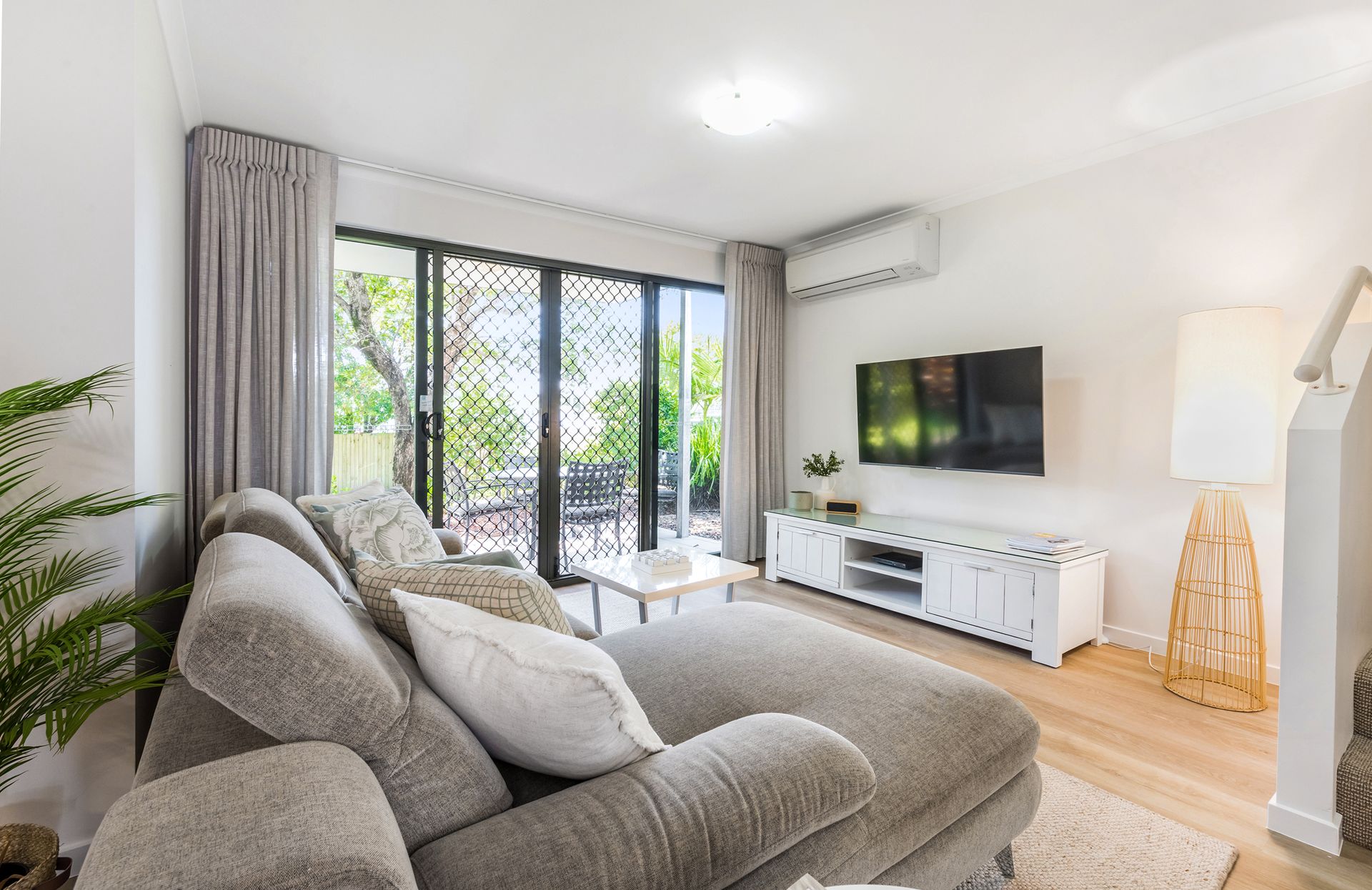 This Villa opens out onto a lawn area out the back, plenty of space for kids to run around, plus offers a undercover lounge area.