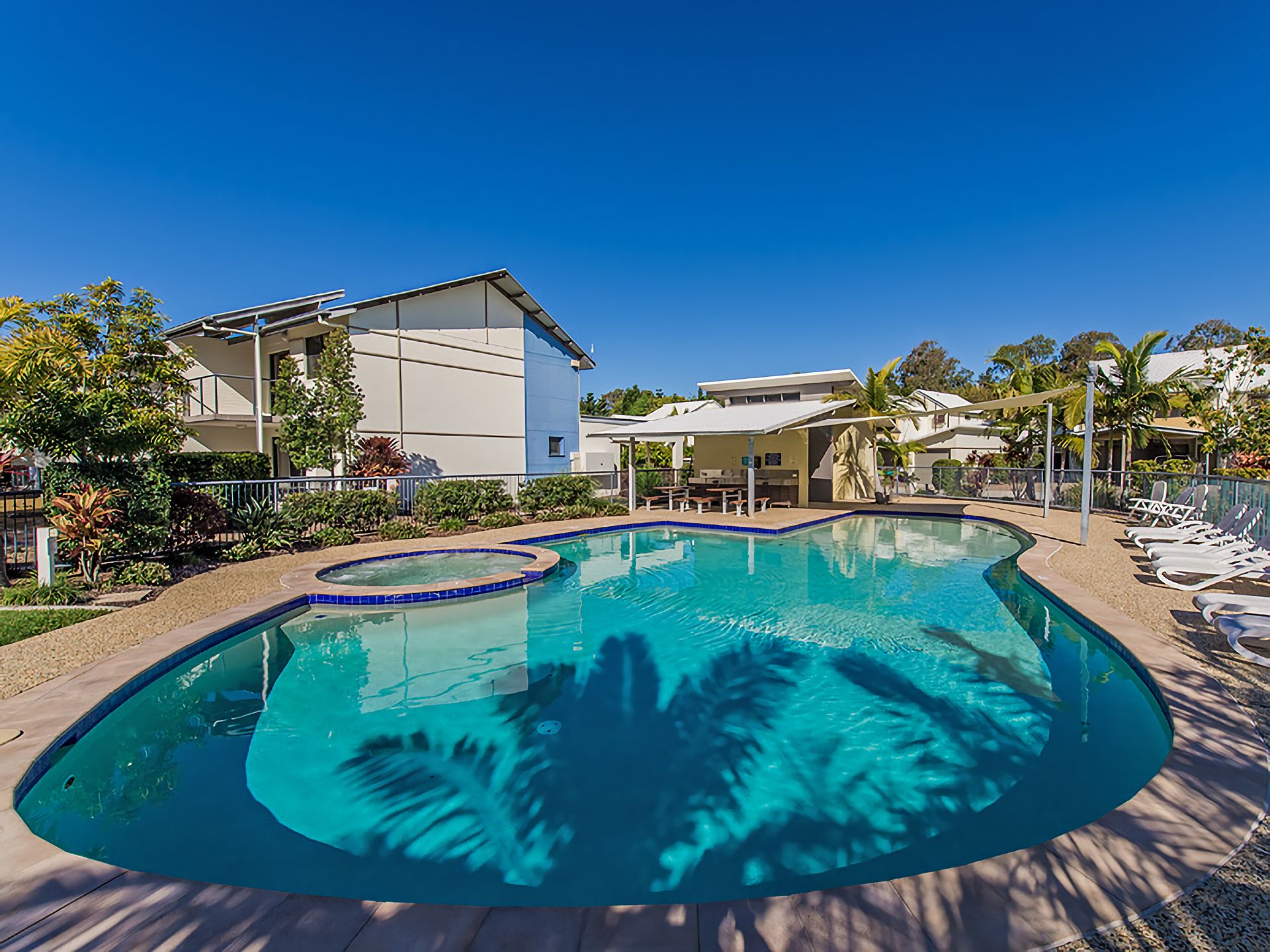 Situated on 7.5 acres of tropical gardens and ponds. 3 swimming pools, lovely flat walks, close to Noosa River and a short drive, bus or ferry to Noosa's Hastings Street. PJs Pizza / Cafe and Bar on site.