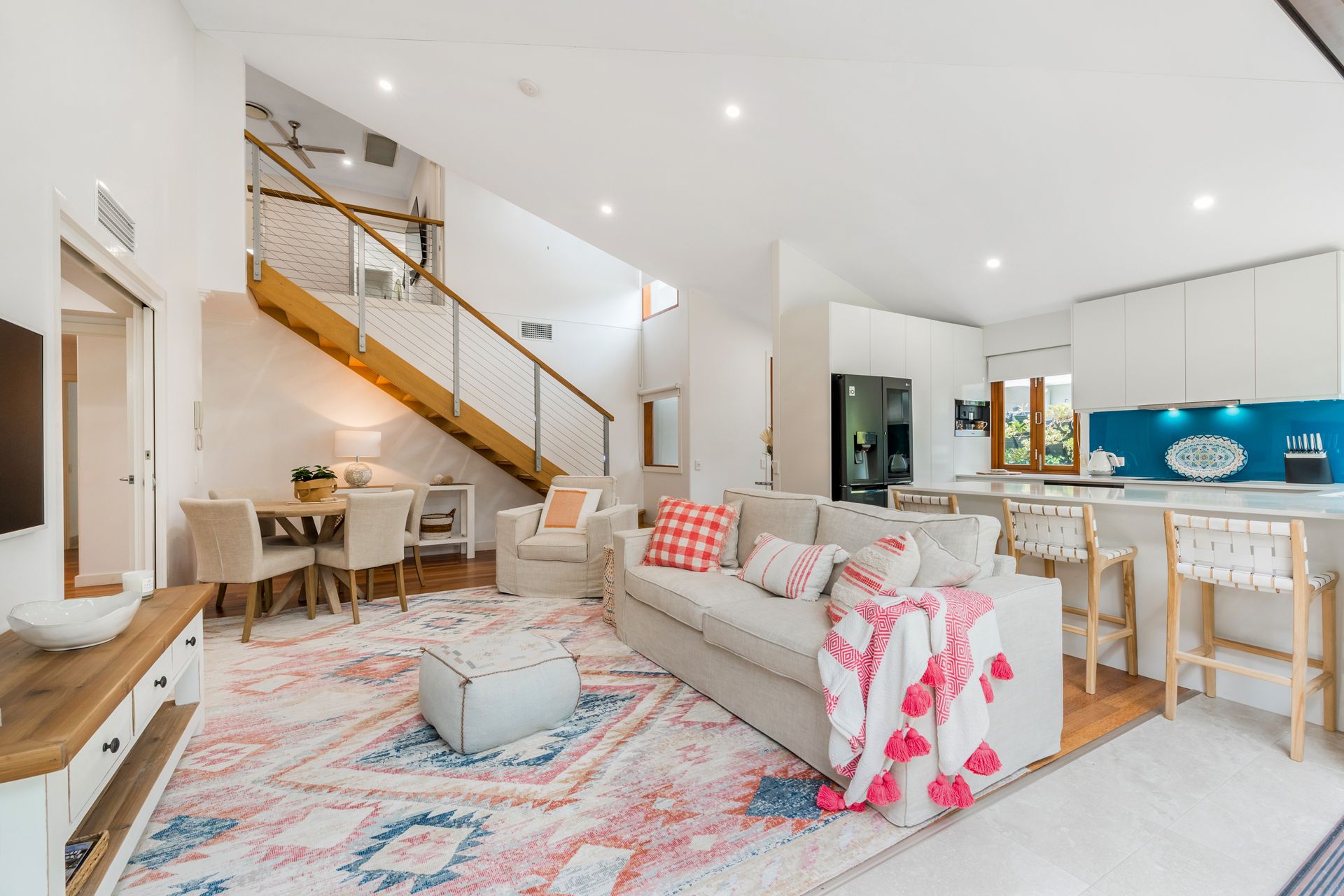 Downstairs features beautifully appointed and furnished kitchen, living and dining areas flowing seamlessly to the outdoors entertaining area, a second living area with a third bathroom