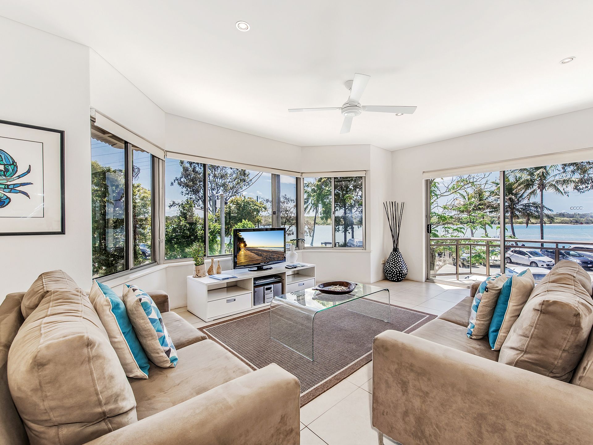 Perfectly located on Gympie Terrace this 2 bedroom 1 bathroom first level apartment opposite the Noosa River is excellent value. Northfacing with River views from the living and kitchen areas and balcony.