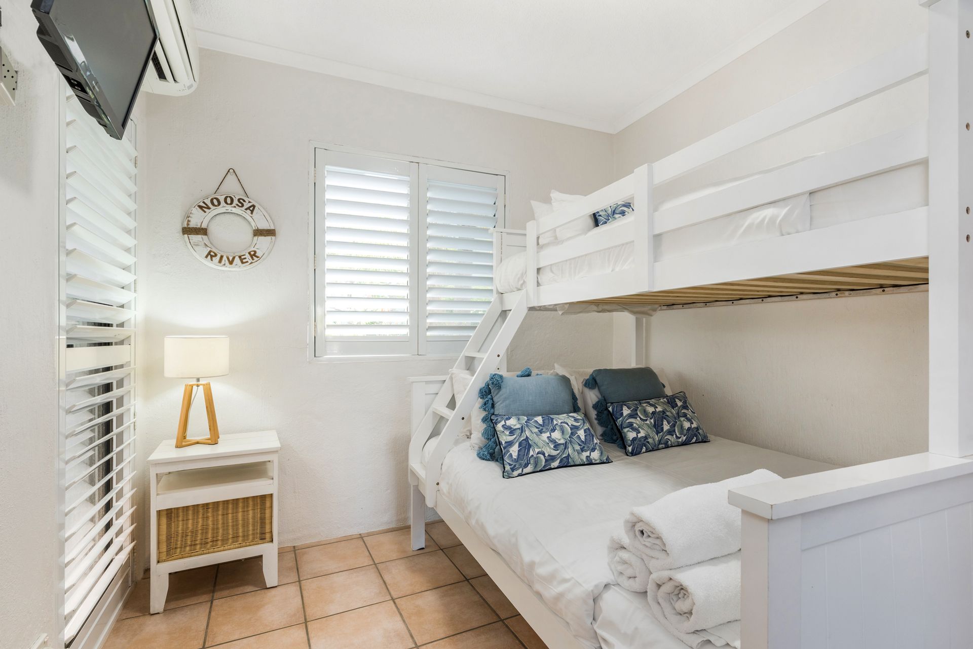 • 1 Queen, 1 x Tri bunk bed (double + single) sleeps 5