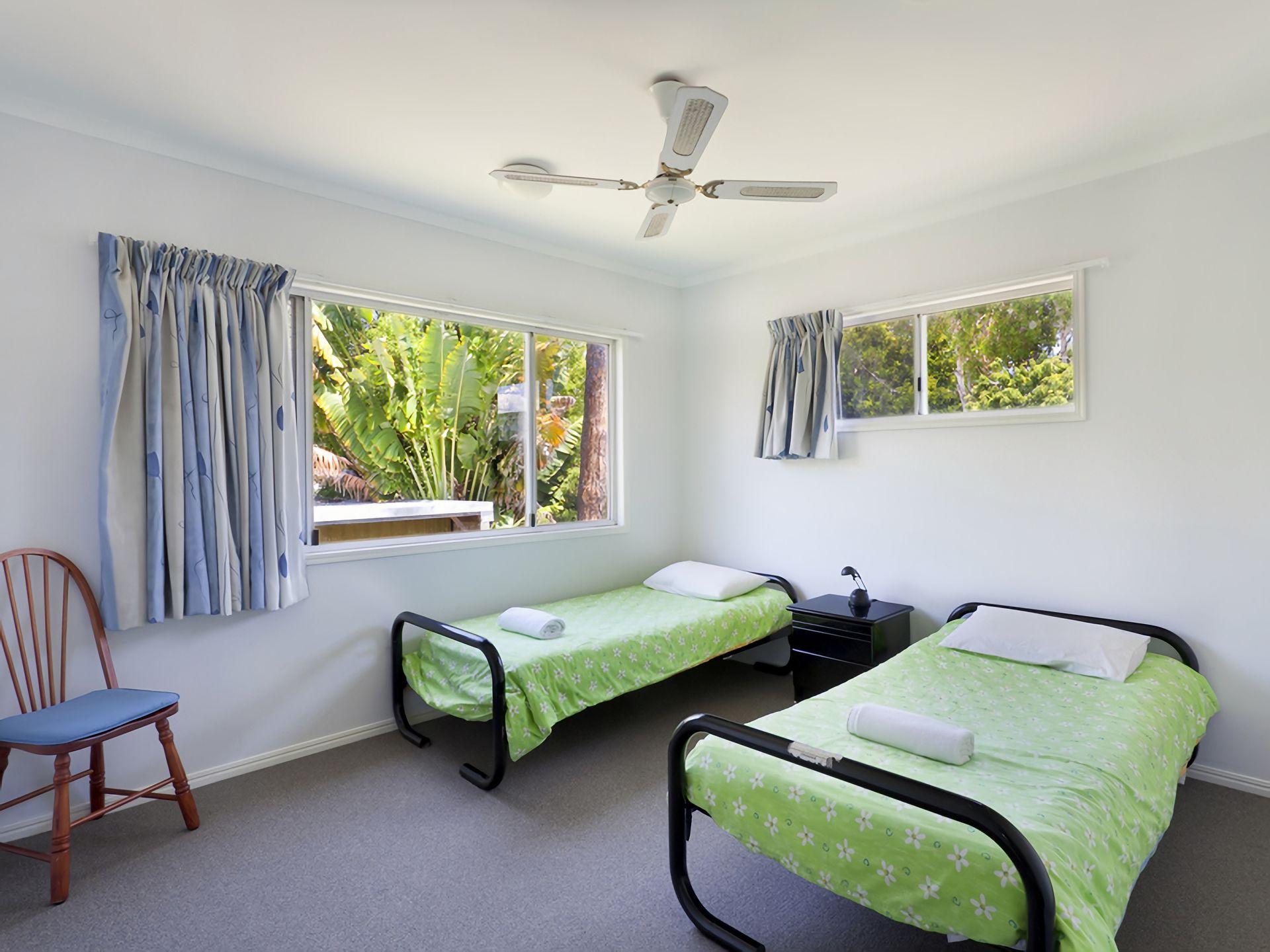 This furnished Queenslander with upstairs living and sleeping, offers 3 bedrooms. Older style but very functional and comfortable holiday home just across from the beautiful Noosa River. Windows and doors are all screened. Features casual cane lounge suite, glass top and cane dining table with 6 chairs. The lounge/dining and bedrooms are carpeted and vinyl throughout for coolness.