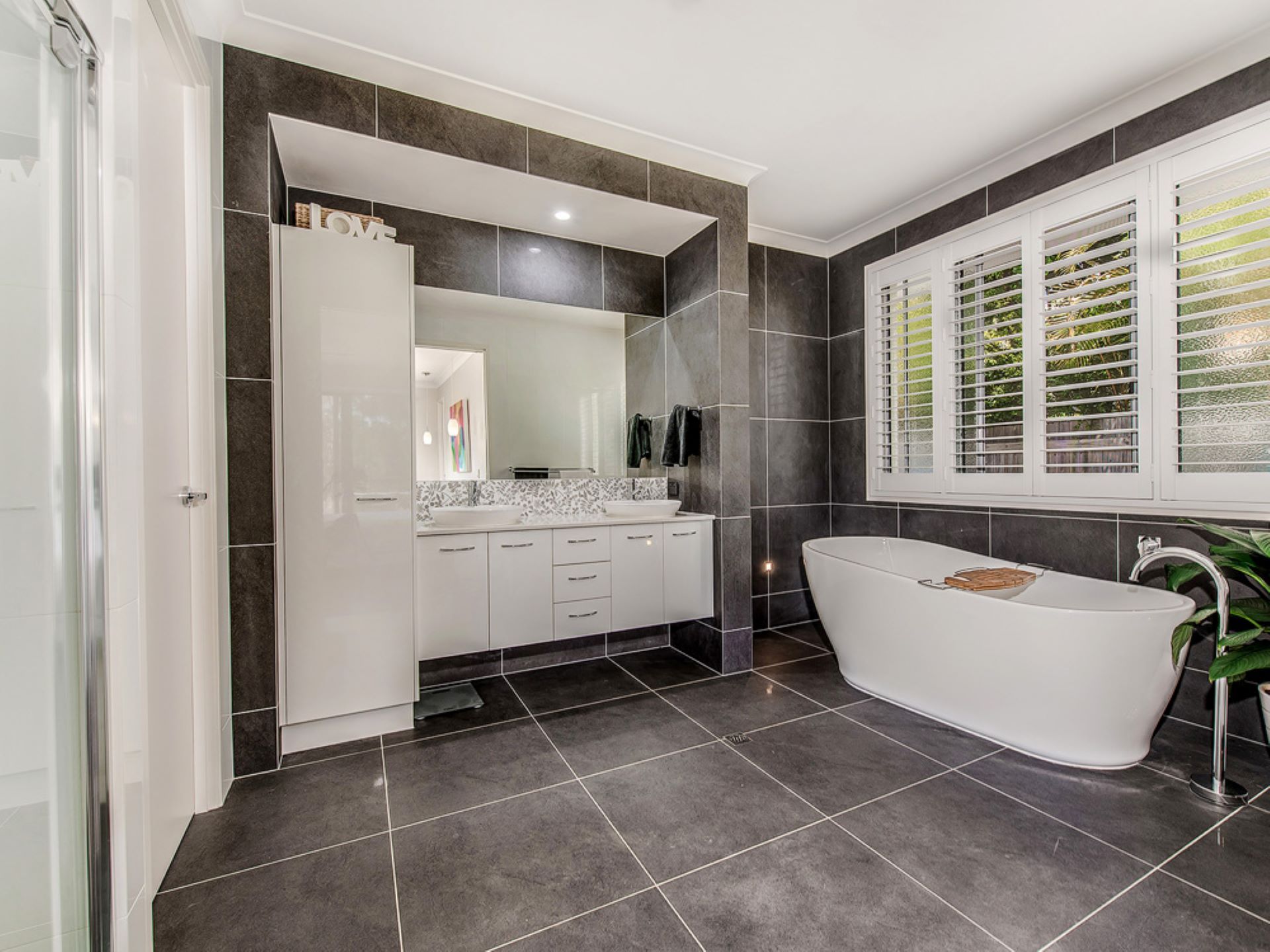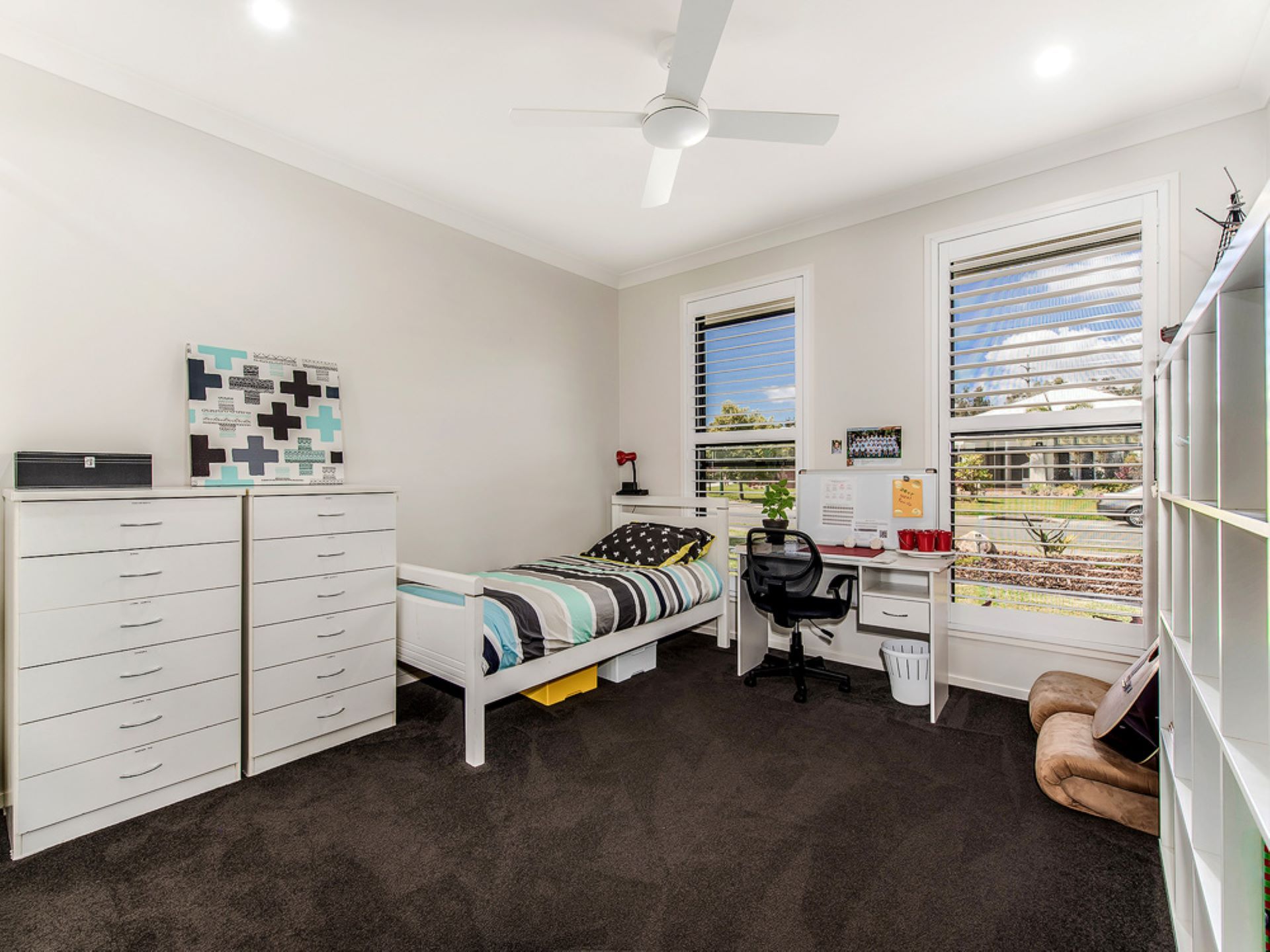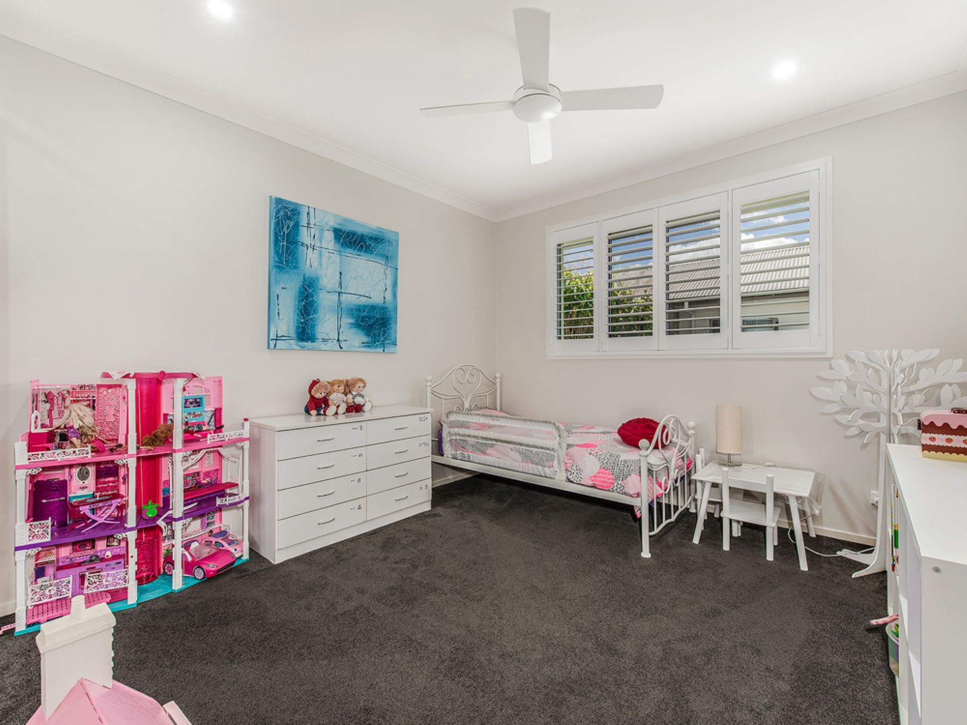 It has an open plan kitchen and dining area; 3 bathrooms; 2 separate entertaining areas with a designated wing for kids or those who prefer some peace. From the large kitchen or outdoor patio area, you have a full view of the fully fenced, in-ground pool and a private view of the peaceful lake behind our property. It features a landscaped and fully fenced backyard so that children can safely play.