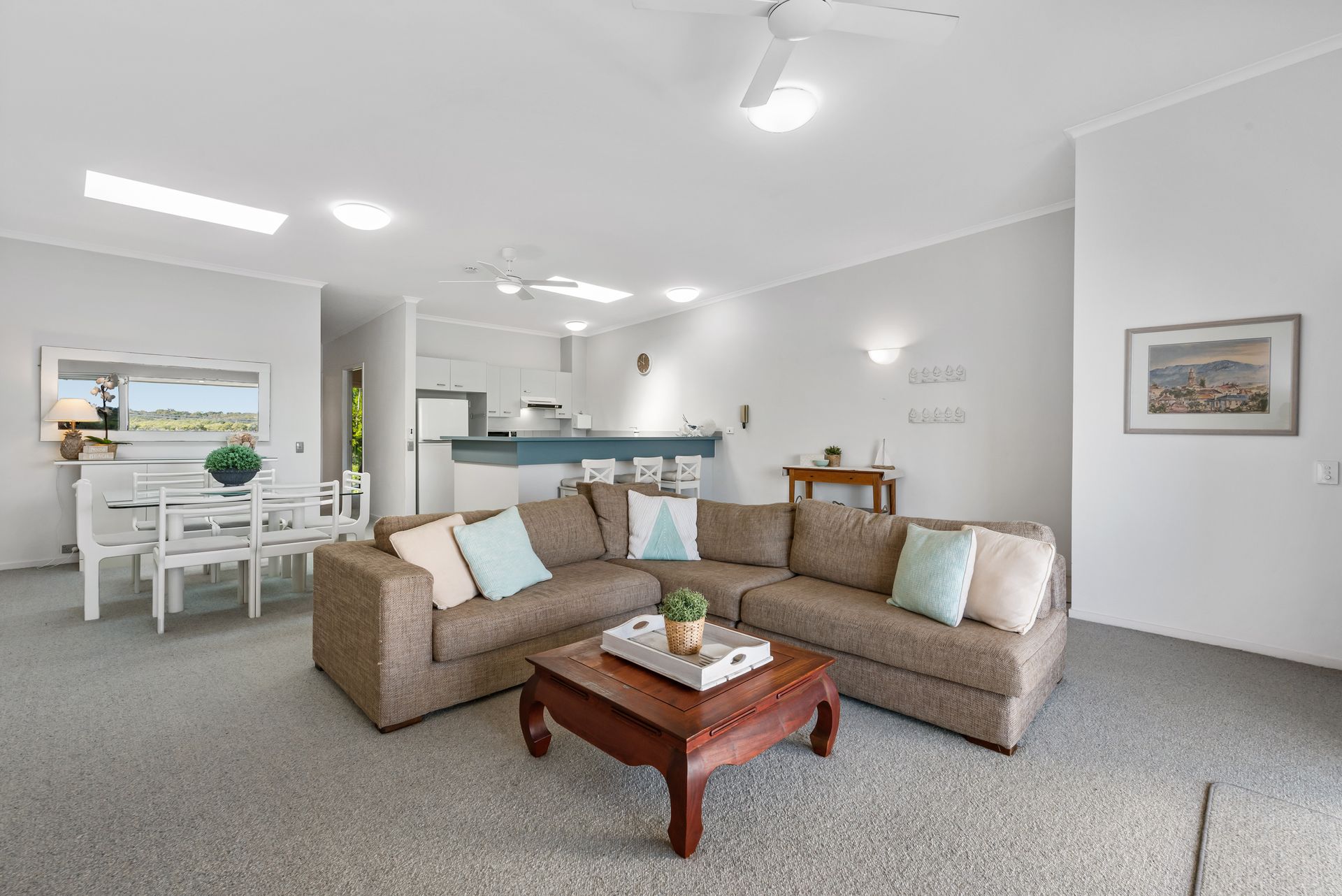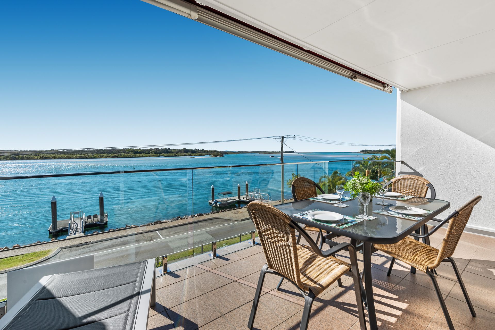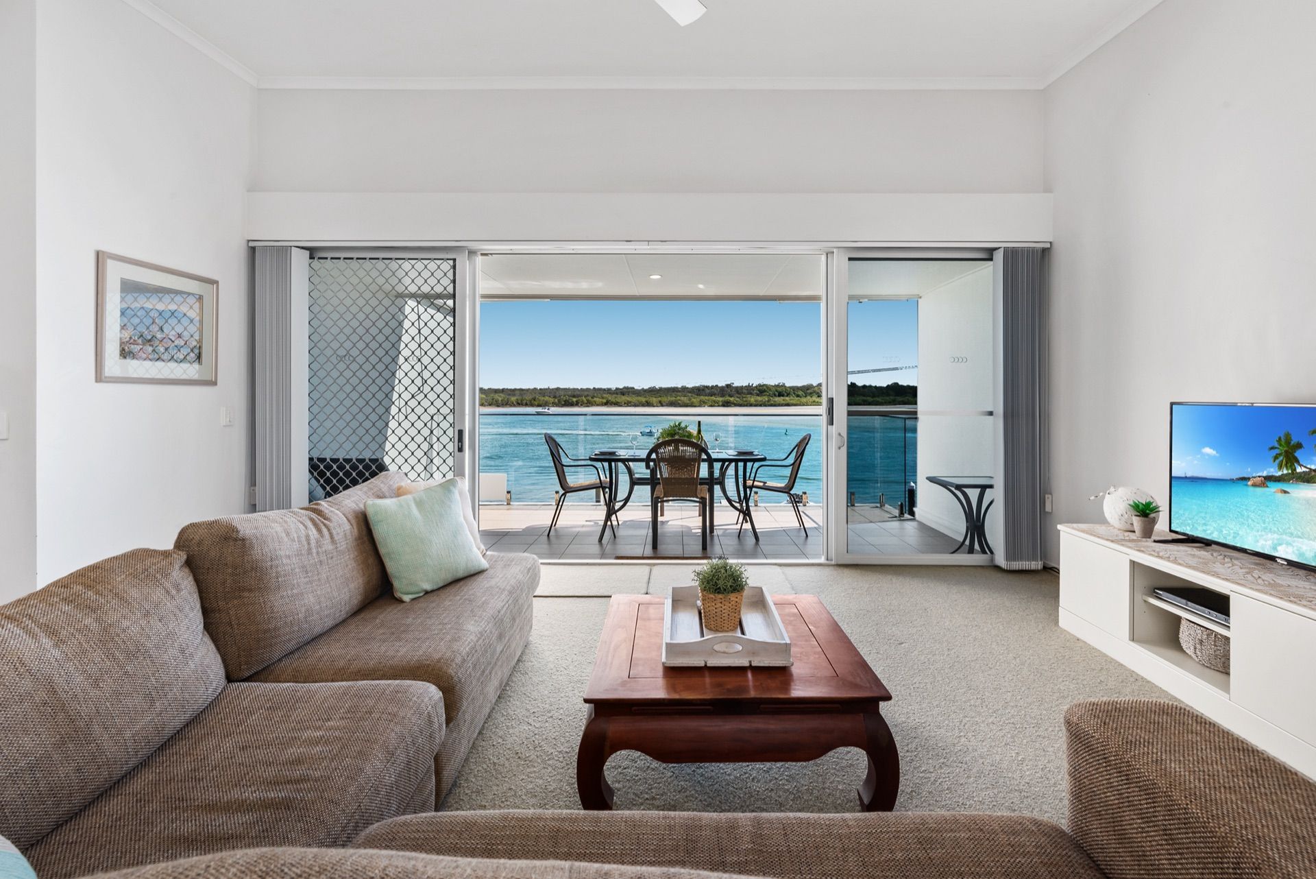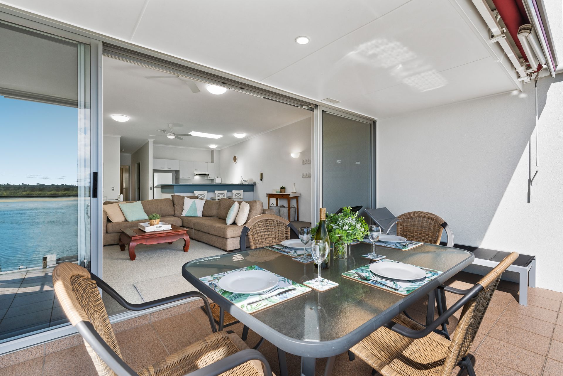 This top level apartment offers 2 air conditioned bedrooms 2 bathrooms large open plan kitchen/dining/living area offering Smart TV, opening out onto your furnished balcony just sit back and enjoy the stunning river view and breezes. The complex offers swimming pool, off street parking and jetty. Excellent Value.