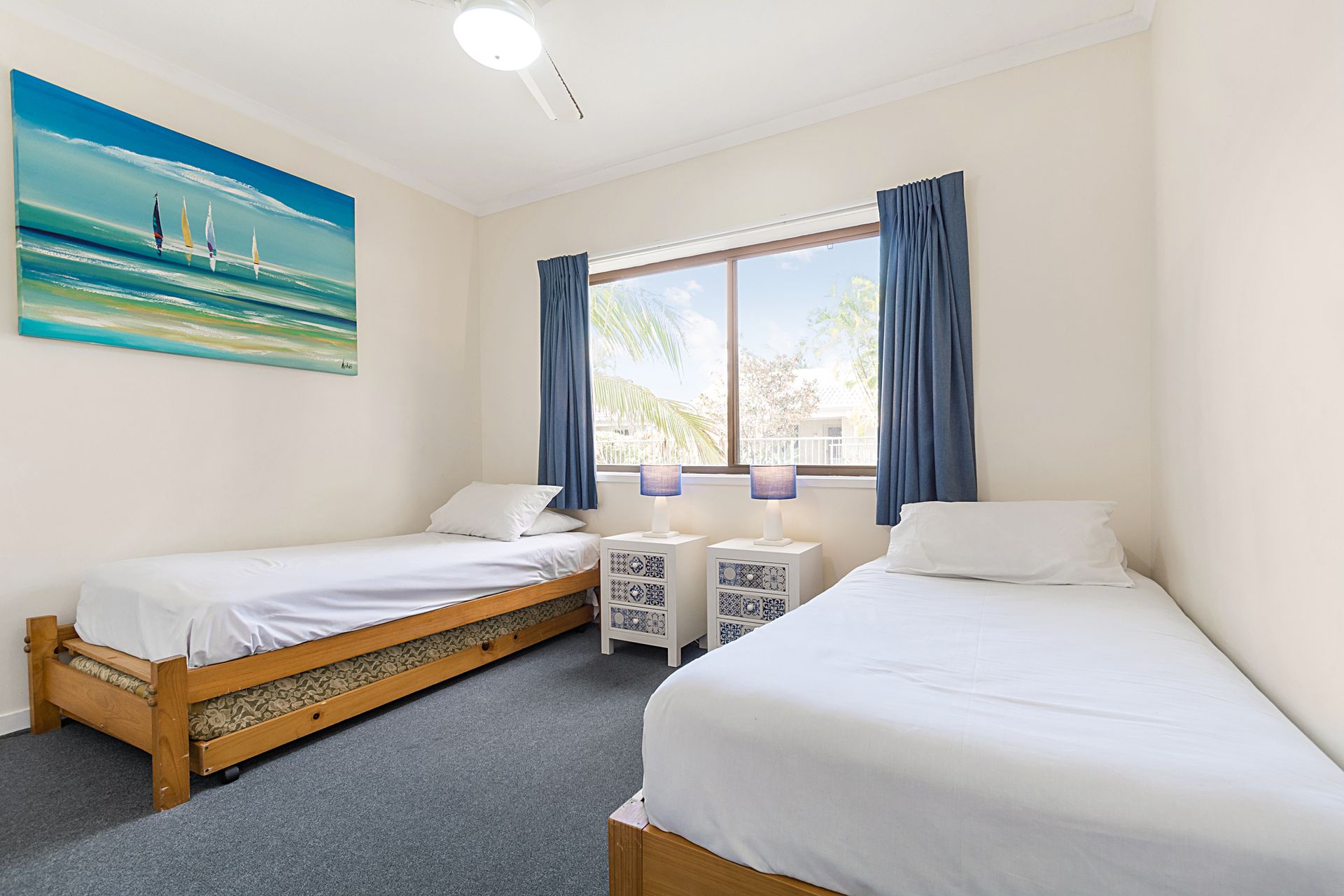 1 Queen, 2 Singles, 1 Trundle (suitable for young child only, No Adults)